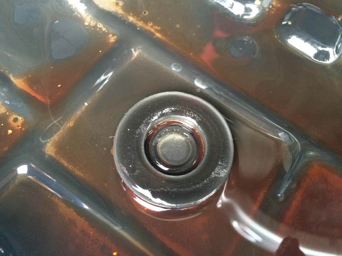 オイルパンの底には磁石があって、そこに鉄粉が溜まっています。
